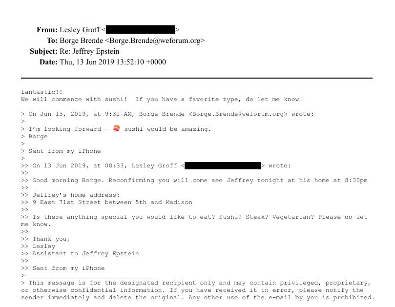 David apparently thought that Epstein’s services would be of help. As Epstein wrote to Brende with a reference to how the The Trilateral Commission operates: